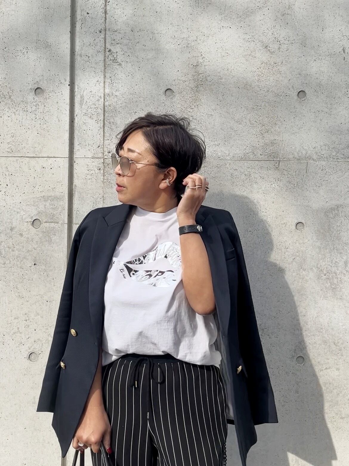 カジュアルに今っぽく着こなしたい方は、ゆったりしたサイズをおすすめします。